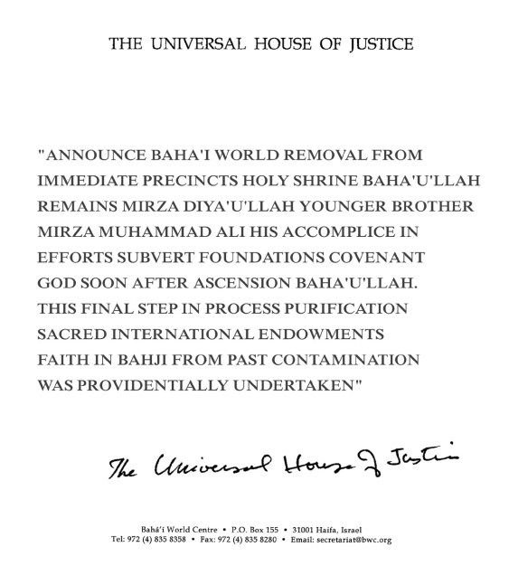 This was not merely removal of an ugly building from otherwise beautiful gardens, nor merely the eviction of undesirables. This represented the death-blow to the violators of the Covenant. Their violation of the Ark of the Testament — the Will and Testament of Baha’u’llah establishing His Covenant– was prophesied in the Bible, as explained by Abdu’l-Baha here….