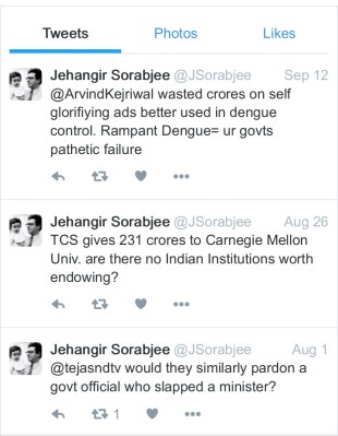 In addition to the accused money squandering, Mr. Sorabjee has been involving himself in commenting on political issues e.g. tweeting against Chief Minister of Delhi, Shri Arvind Kejriwal’s policies and telling him that his government is a pathetic failure or criticizing the TCS for giving Rs 231 crores to Carnegie Mellon University instead of Indian Institutions, whereas he himself is transferring his and may be Baha’i money abroad !! Aren’t their Tax Saving schemes and opportunities in India ?