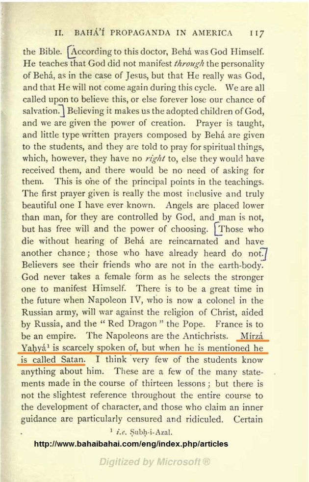“Mirza Yahya is scarcely spoken of, but when he is mentioned he is called Satan.” (E.G. Browne, Materials for the Study of the Babi Religion, p. 117)