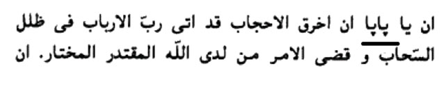 The Farsi word for print is chap. The characters ‘ch’ and ‘p’ used in this word do not exist in Arabic. The Bab used this Persian word with non-existent characters in an Arabic sentence. This is while the Arabic word for printing is tab`, which he could have been easily used!